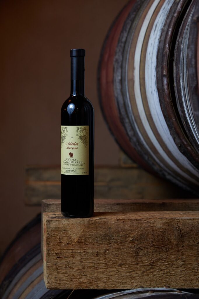 Το Merlot Alargino καλλιεργείται στο ομώνυμο, ξεχωριστό αμπελοτόπι Αλαργινό, το «πιο απομακρυσμένο». Αυτός ο αμπελώνας παράγει σταφύλια με χαμηλές στρεμματικές αποδόσεις και υψηλή συγκέντρωση, Πρόκειται για ένα ιδιαίτερα εκλεπτυσμένο κρασί, που ωριμάζει για 12 μήνες σε γαλλικά, δρύινα βαρέλια και ακολουθεί τουλάχιστον 12μηνη ωρίμανση στην κάβα. Και αυτό μπορεί να το απολαύσει κανείς 30 χρόνια μετά την εσοδεία του. Στη μύτη βγάζει μεταξύ άλλων έντονα αρώματα μαύρων κερασιών και μούρων, ενώ γευστικά τα ψημένα φρούτα και η γλυκόριζα ισορροπούν τα μούρα σε ένα φινετσάτο, αλλά και εκφραστικό σύνολο με γεμάτο σώμα, απαλές τανίνες και μακρά επίγευση.