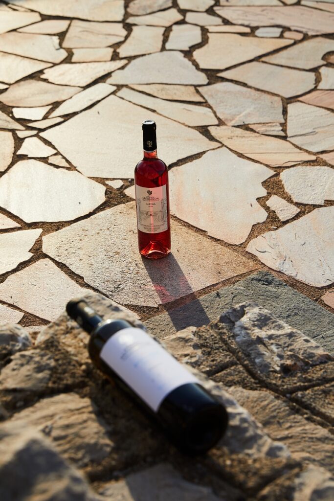 Τέλος, το ροζέ Alfega πήρε το όνομά του από το πρώτο και το τελευταίο γράμμα της ελληνικής αλφαβήτου και εκφράζει τη φιλοσοφία παραγωγής των κρασιών του κτήματος, από το πρώτο έως το τελευταίο στάδιο της διαδρομής, δηλαδή από την καλλιέργεια στην οινοποίηση μέχρι τη διανομή του προϊόντος. Το συγκεκριμένο ροζέ είναι ένας αρμονικός συνδυασμός Syrah, Grenache Rouge και Μαλαγουζιάς που δίνει ένα αναζωογονητικό αποτέλεσμα. Στη μύτη βγάζει έντονα αρώματα φράουλας, κόκκινου βατόμουρου και τριανταφυλλιάς, ενώ στη γεύση είναι απαλό, με έντονο φρουτώδη και δροσιστικό χαρακτήρα, ισορροπημένη οξύτητα και ελαφρύ σώμα.