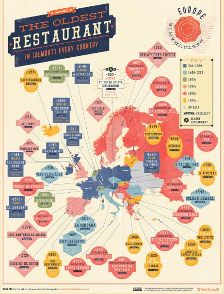 Έχετε ποτέ αναρωτηθεί ποιο είναι το παλαιότερο εστιατόριο ανά χώρα; Η NetCredit σχεδίασε έναν χάρτη με σχετικές πληροφορίες για σχεδόν κάθε χώρα του κόσμου.