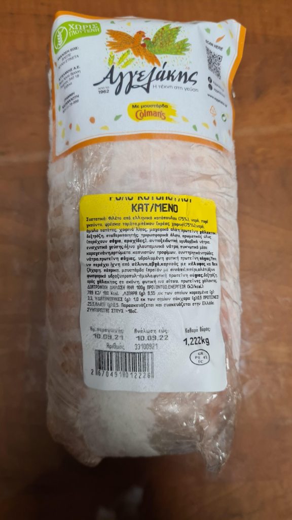Ο Ε.Φ.Ε.Τ. και συγκεκριμένα η Περιφερειακή Διεύθυνση Αττικής, κατά τη διενέργεια ελέγχων στο πλαίσιο του Προγράμματος «Έλεγχος για Salmonella spp., Listeria monocytogenes και παρουσία σταφυλοκοκκικών τοξινών», προέβη σε δειγματοληψία τροφίμου με τα στοιχεία: «Ρολό Κοτόπουλο Κατεψυγμένο», με αριθμό παρτίδας: 33100921, ημερομηνία παραγωγής:10.09.2021 και ημερομηνία ανάλωσης κατά προτίμηση πριν από 10-09-2022, καθαρού βάρους 1,22 kg, που παράγεται από την επιχείρηση ΑΓΓΕΛΑΚΗΣ Α.Ε. και σε συνεργασία με τα Εργαστήρια, Δοκιμών και Ερευνών Τροφίμων Αθήνας του ΕΦΕΤ, διαπιστώθηκε η παρουσία του παθογόνου βακτηρίου Salmonella spp.