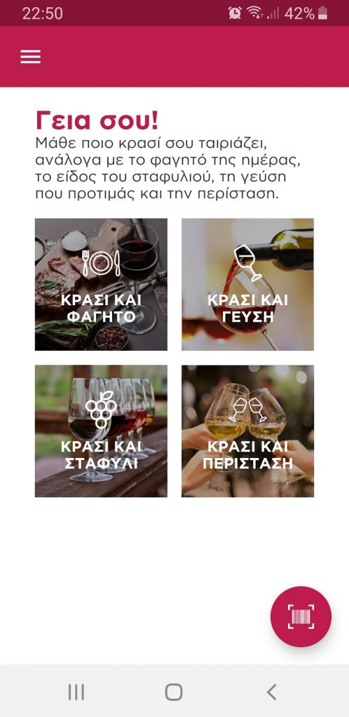 Συγκεκριμένα, η νέα εφαρμογή μάς ξεναγεί στον κόσμο του κρασιού γύρω από 4 βασικούς άξονες: