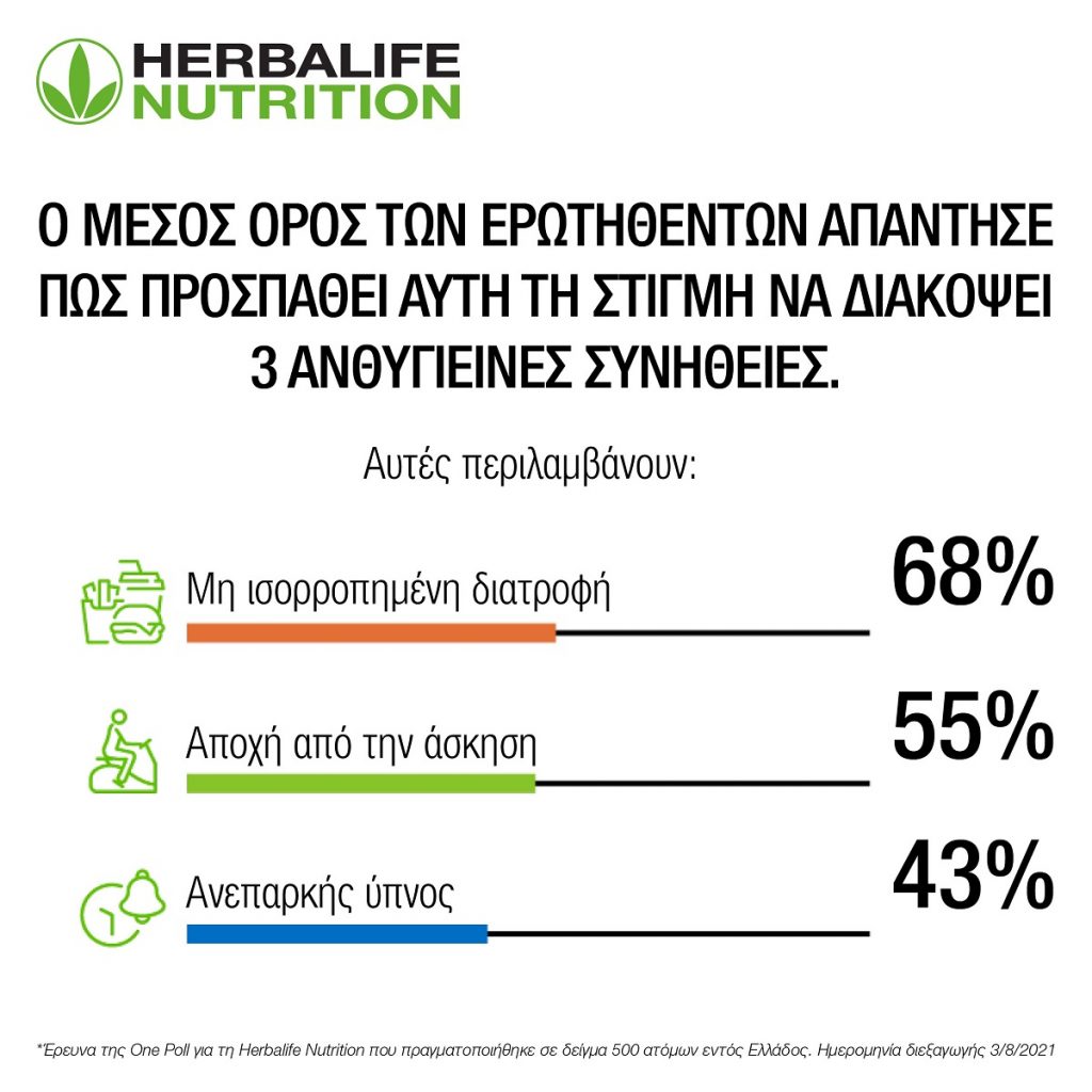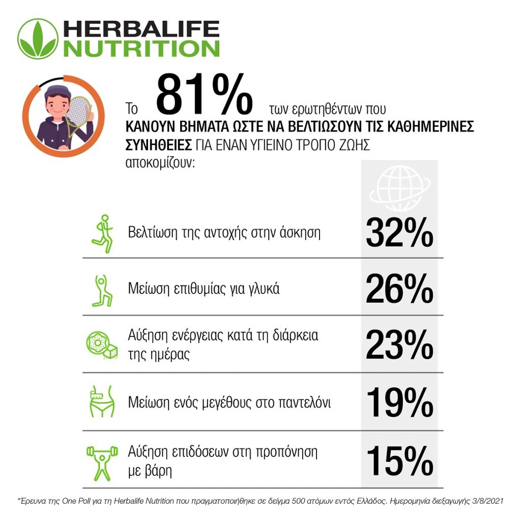 Μια νέα ερευνα που πραγματοποιήθηκε από την OnePoll για λογαριασμό της Herbalife Nutrition και του Council For Responsible Nutrition δείχνει τη στροφή του κόσμου σε έναν πιο υγιεινό τρόπο ζωής. Σε αυτήν συμμετείχαν περισσότεροι από 11.000 άνθρωποι από 24 διαφορετικές χώρες παγκοσμίως.