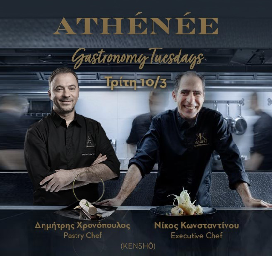Ο Executive Chef Νίκος Κωνσταντίνου και ο consultant pastry chef Δημήτρης Χρονόπουλος του Kensho Boutique Hotel & Villas της Μυκόνου, είναι οι επόμενοι καλεσμένοι που θα βρεθούν στην κουζίνα του Athénée την Τρίτη 10 Μαρτίου, στο πλαίσιο των γαστρονομικών εκδηλώσεων Gastronomy Tuesdays.