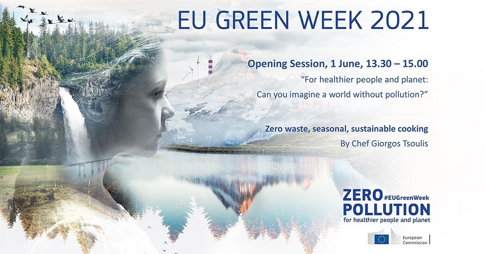 Η Πράσινη Εβδομάδα της Ε.Ε., η μεγαλύτερη ετήσια εκδήλωση για την περιβαλλοντική πολιτική, είναι και φέτος γεγονός! Το 2021 το κεντρικό θέμα της είναι η φιλοδοξία της Ε.Ε. για μηδενική ρύπανση του περιβάλλοντος. Πρωταγωνιστής της εκδήλωσης για την Ελλάδα ο γνωστός Chef Γιώργος Τσούλης.