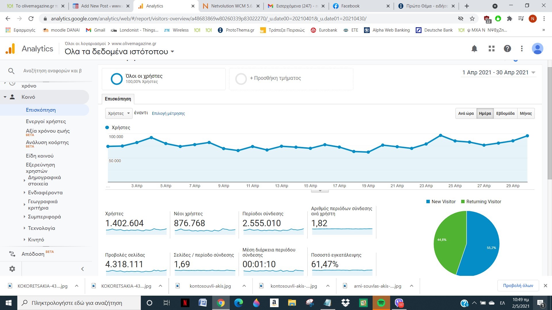 Σύμφωνα με τα επίσημα στοιχεία, όπως αυτά καταγράφονται από την Google Analytics, τον Απρίλιο 1.402.604 μοναδικοί χρήστες επέλεξαν το olivemagazine.gr για να διαβάσουν θέματα διατροφής και επικαιρότητας, γαστρονομικά νέα και να ανακαλύψουν πεντανόστιμες και δοκιμασμένες συνταγές.