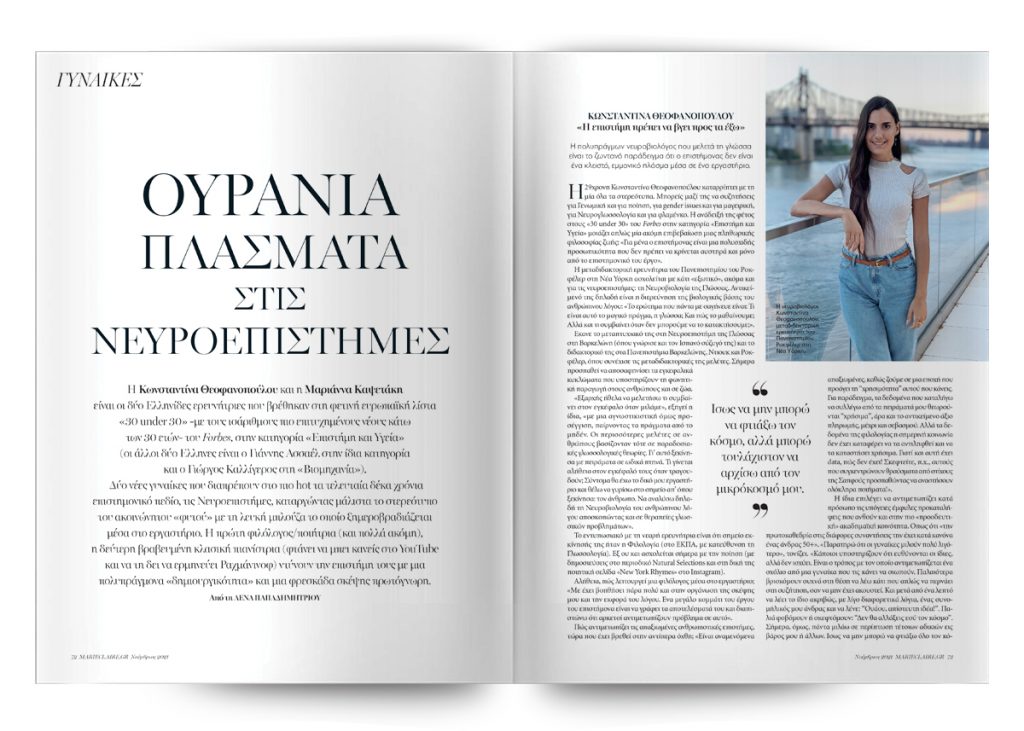Ενώ η νέα ελίτ είναι για εμάς οι δύο Ελληνίδες επιστήμονες στη λίστα του Forbes, “30 under 30”, Κωνσταντίνα Θεοφανοπούλου και Μαριάννα Καψετάκη
