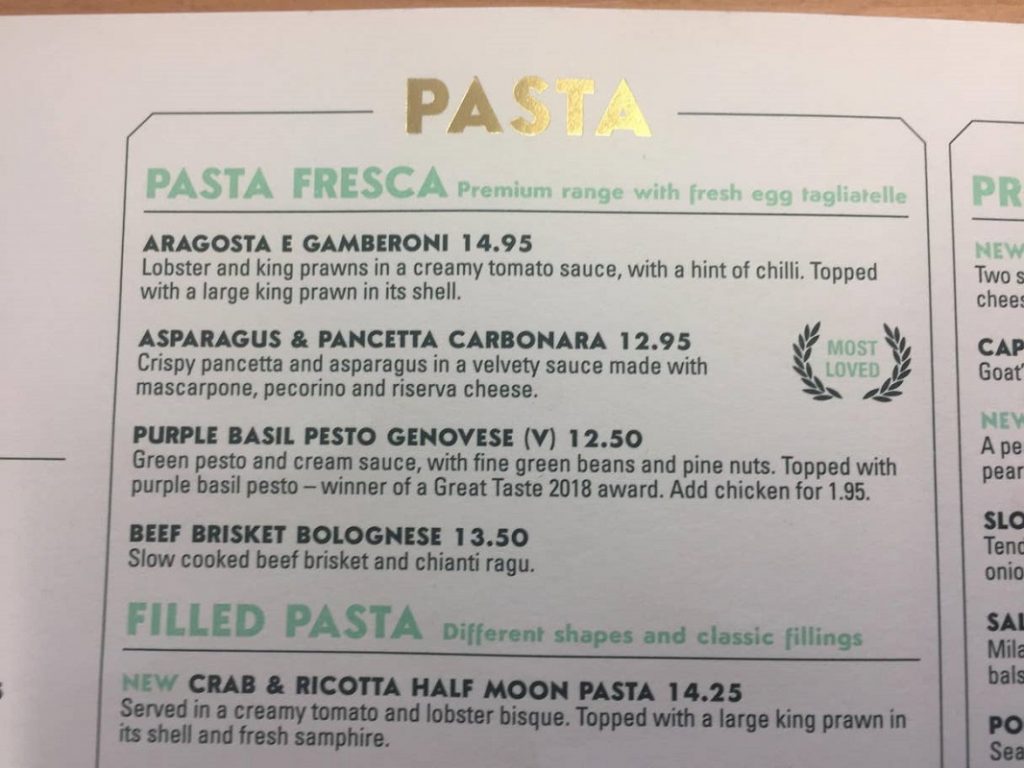 Πρόκειται για τη βρετανική αλυσίδα εστιατορίων «Ask Italian», που ένα από τα πιο ακριβά πιάτα στο μενού της είναι το «Aragosta e Gamberoni» με τιμή £14.95, που όπως αναφέρεται στον κατάλογο είναι ζυμαρικά με αστακό, γαρίδες και κρεμώδη σάλτσα ντομάτας με τσίλι. Ωστόσο, σύμφωνα με δημοσίευμα του Independent , επιθεωρητής της Υπηρεσίας Εμπορικών Προτύπων ανακάλυψε σε έλεγχο ρουτίνας, ότι στο εστιατόριο που βρίσκεται στο Σουόνσι το πιάτο δεν περιείχε όσο αστακό θα έπρεπε.