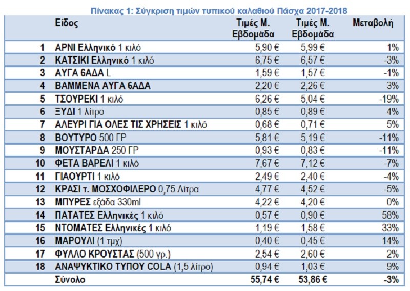 Αξίζει να σημειωθεί ότι αυτές οι τιμές είναι ενδεικτικές και βασίζονται σε εκτιμήσεις και πως ανάλογα με τη ζήτηση της Μεγάλης Εβδομάδας αναμένεται να μειωθούν ακόμη περισσότερο, ενώ επίσης δεν εμπεριέχουν τις προωθητικές-εκπτωτικές ενέργειες που πραγματοποιούνται αυτή την περίοδο. Επιπλέον, αυτό που αξίζει να σημειωθεί είναι πως όπως και τις προηγούμενες χρονιές, το 2019 για άλλη μια χρονιά οι τιμές εμφανίζουν σημαντικό εύρος το οποίο εκτιμάται περίπου σε 35%, δίνοντας τη δυνατότητα στον καταναλωτή να επιλέξει το καλάθι ανάλογα με τις δυνατότητες του.