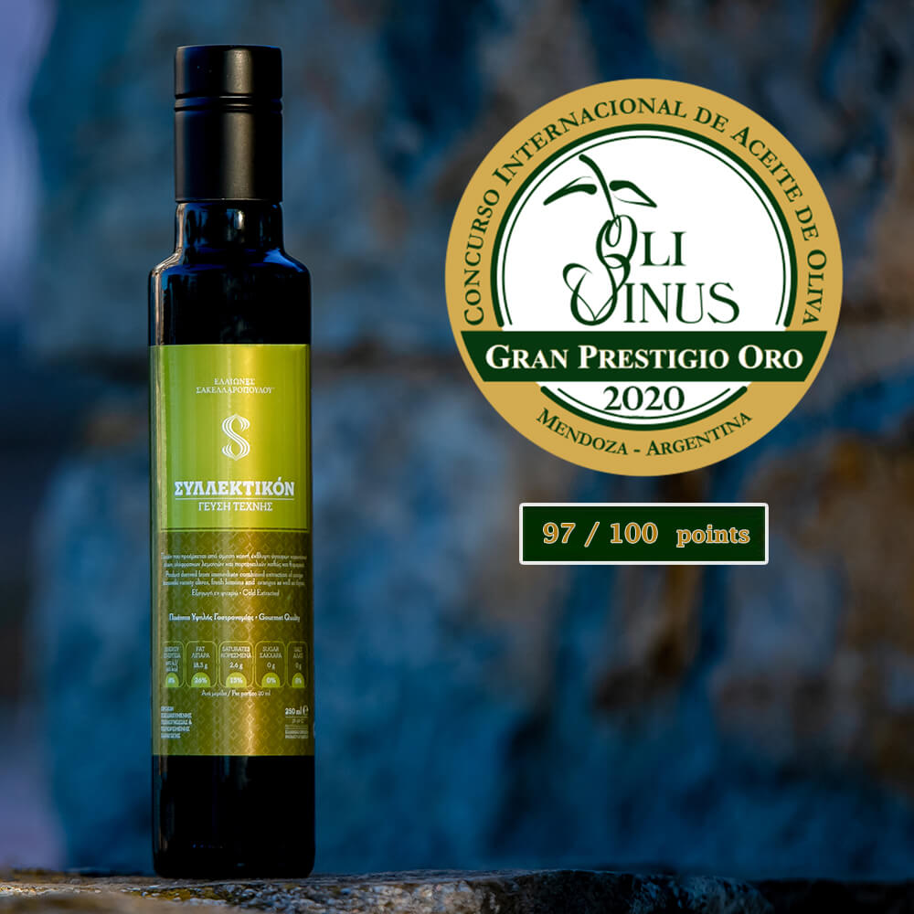 Μια μοναδική διάκριση τόσο για την Ελλάδα, για την Λακωνία αλλά και για Έλληνα ελαιοπαραγωγό, στον 14ο OLIVINUS International Olive Oil Competition 2020, τον τελευταίο αναγνωρισμένο παγκόσμιο διαγωνισμό ελαιολάδων για την χρονιά του 2020. Ο διεθνής διαγωνισμός OLIVINUS 2020 πραγματοποιήθηκε στην Μεντόζα της Αργεντινής, αρχές Οκτωβρίου 2020, με συμμετοχές 176 εταιρειών ελαιολάδου, από 19 χώρες του κόσμου. Αποτελεί έναν από τους πλέον αναγνωρισμένους διαγωνισμούς γευσιγνωσίας ελαιολάδων παγκοσμίως, έχοντας πολύ υψηλό βαθμό δυσκολίας, πράγμα που αποδεικνύεται από την υψηλή βαθμολογία 9 / 10 που του έχει δοθεί από την διεθνή κατάταξη EVOO World Ranking.