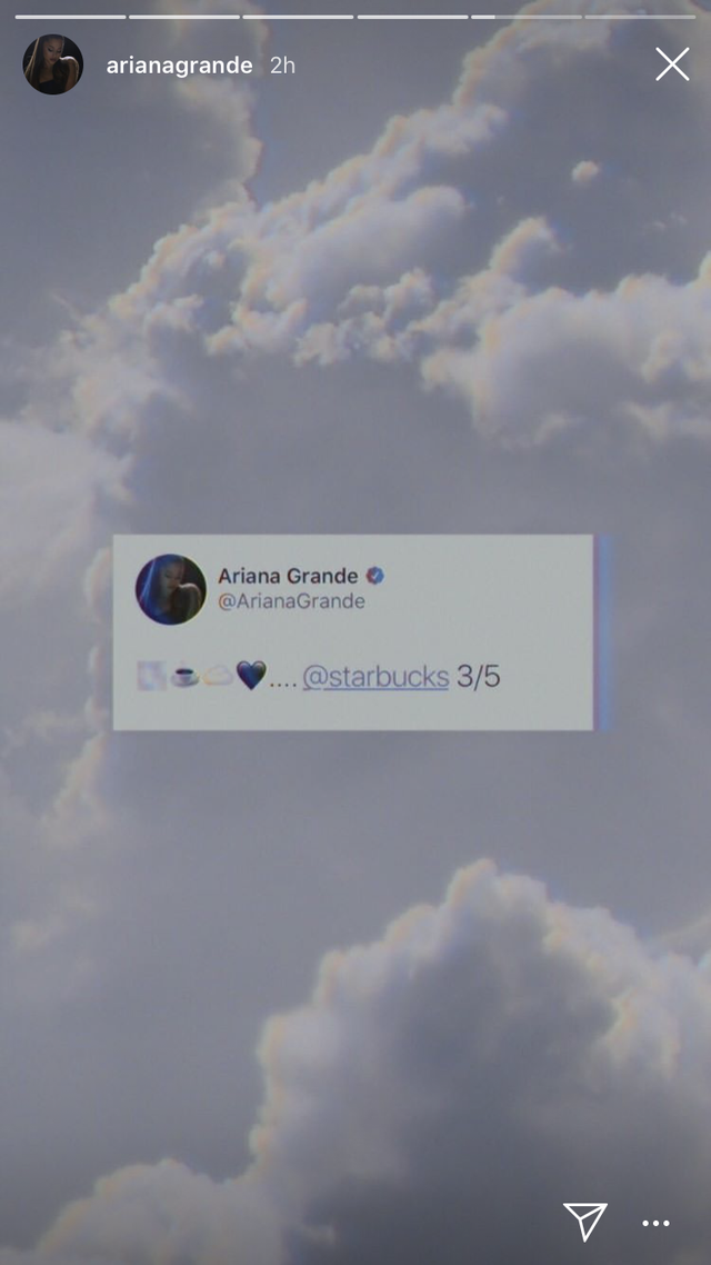 Τελικά η Αριάνα επιβεβαίωσε τις φήμες για επικείμενη συνεργασία στέλνοντας ένα tweet στα Starbucks στο οποίο έγραφε 3/5 (δηλαδή 5 Μαρτίου) και πολλά emojis με σύννεφα και καφέ.
