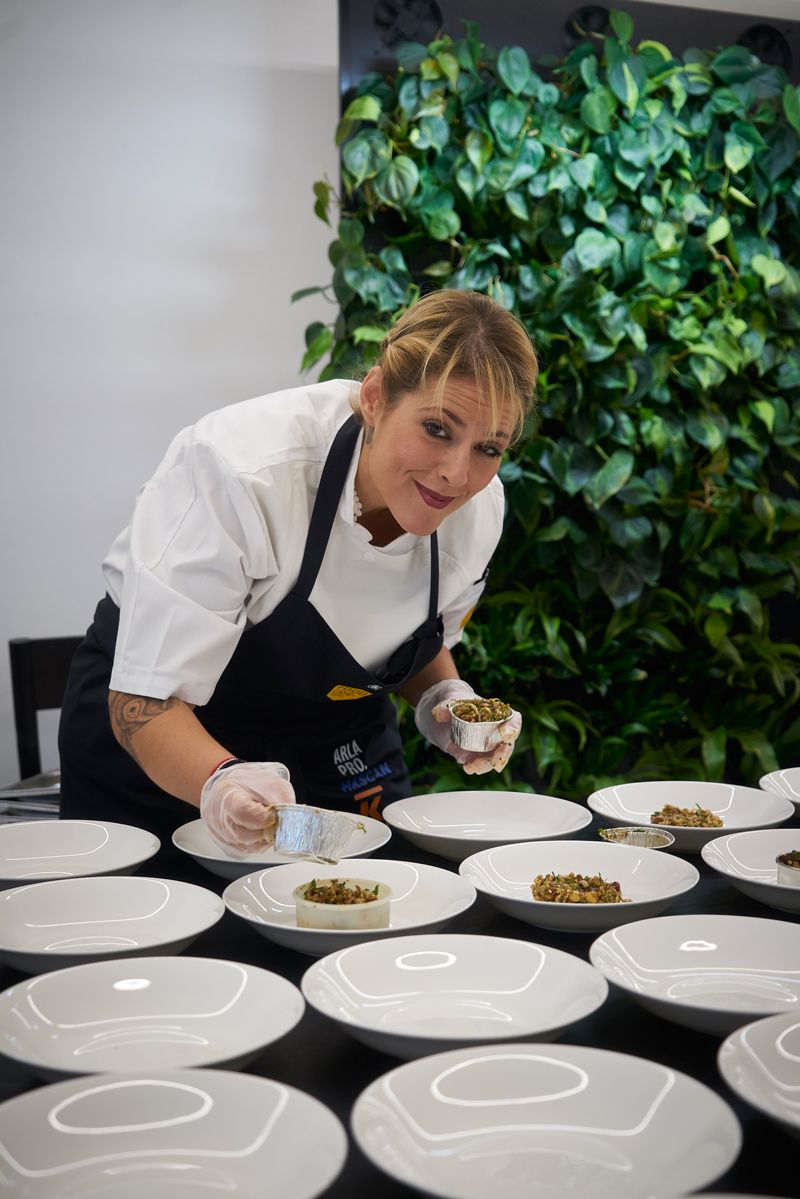 Το μενού δοκίμασαν 350 άτομα με καλεσμένους επιχειρηματίες από το χώρο της γαστρονομίας, βραβευμένους σεφ, δημοσιογράφους κ.ά. «Μάς ζητήθηκε να ετοιμάσουμε ο καθένας από ένα πιάτο κι εγώ ανέλαβα τη σαλάτα η οποία έπρεπε να έχει αυστηρά χορτοφαγικό προφίλ. Πρότεινα την οσπριάδα, που ως ιδέα και συνταγή τους άρεσε πολύ. Περιείχε διάφορα όσπρια όπως ροβίτσα, ρεβίθια, φασόλια μαυρομάτικα, κόκκινα φασόλια κ.ά που συνδύασα -για τραγανή υφή και ενίσχυση της θρεπτικής αξίας του πιάτου- με σπόρους και ξηρούς καρπούς όπως ηλιόσπορο, κολοκυθόσπορο, σουσάμι, μαυροκούκι και πικάντικα αμύγδαλα, κόκκινη μουστάρδα, φύλλα κόκκινης ρόκας και μυρωδικά όπως μαϊντανό, άνηθο, δυόσμο. Η οσπριάδα είναι μια σαλάτα με δυναμική σε γεύση, ποικιλία υφών και υψηλή θρεπτική αξία. Είναι πιάτο μοναστηριακής κουζίνας που παρουσιάζω σε εξελιγμένη μορφή, η βάση μου είναι η κρητική παλικαριά, την οποία παρουσίασα σαν ένα πλήρες γεύμα, όπως δηλαδή τρωγόταν και από τους μοναχούς. Πέρα από τη γεύση, αυτό που άρεσε στους Φινλανδούς ήταν η λογική του πιάτου και ο τρόπος που μια σαλάτα μετατράπηκε σε πλούσιο γεύμα. Επίσης, η διοργάνωση προέβλεπε γραπτή καταγραφή των εντυπώσεων για κάθε πιάτο από τους καλεσμένους και τα σχόλια που απέσπασα-και έχω κρατήσει- ήταν πολύ θετικά, ακόμα και από όσους, όπως έγραφαν, δεν έτρωγαν τα όσπρια αλλά θα ήθελαν να φτιάξουν τη συνταγή στο σπίτι. Οι επισκέπτες είχαν και ρόλο “κριτών”, κάτι που έδινε στην εκδήλωση διαδραστικό χαρακτήρα. Μάλιστα, στο τέλος κάθε ημέρας, οι σεφ ανεβαίναμε στη σκηνή για έναν πολύ εποικοδομητικό διάλογο με τους καλεσμένους με θέμα τα πιάτα που παρουσιάσαμε», επισημαίνει η σεφ.