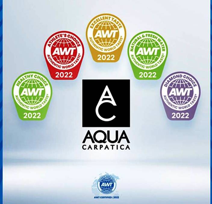 Εκτός όμως από τις διακρίσεις στα AVRA PARIS GOURMET, το AQUA Carpatica είχε ακόμη πέντε διακρίσεις – μία σπουδαία πιστοποίηση από τον Διεθνή Οργανισμό ” Ambassadors of Taste for Global Gastronomy” (AWT) για την γεύση τους. Τα «βαριά χαρτιά» της παγκόσμιας γαστρονομικής σκηνής αλλά και δημοφιλείς προσωπικότητες από όλο τον κόσμο όπως οι Νόμπου Ματσουχίσα, Κριστιάν Καρεμπέ και Ζαν Λουί Καψαλάς δοκίμασαν εκατοντάδες προϊόντα και μας επιβράβευσαν με τις κάτωθι διακρίσεις: