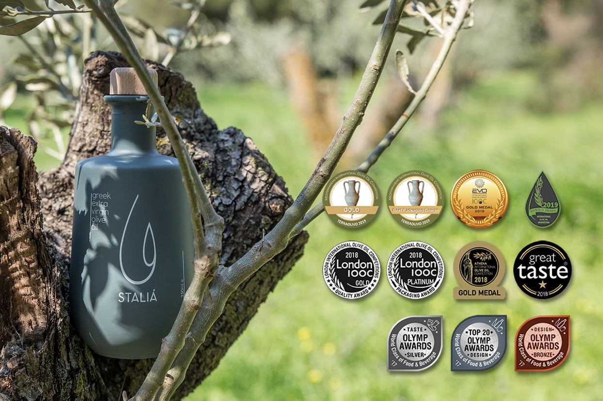 Στον διεθνή διαγωνισμό TERRAOLIVO 2019 το ελαιόλαδο Staliá όχι μόνο επιβεβαίωσε την εξαιρετική ποιότητα με ένα Χρυσό Μετάλλιο ποιότητας (Gold Medal), αλλά επιπλέον βραβεύτηκε με Μετάλλιο Καλύτερης Συσκευασίας (Best Packaging Design).