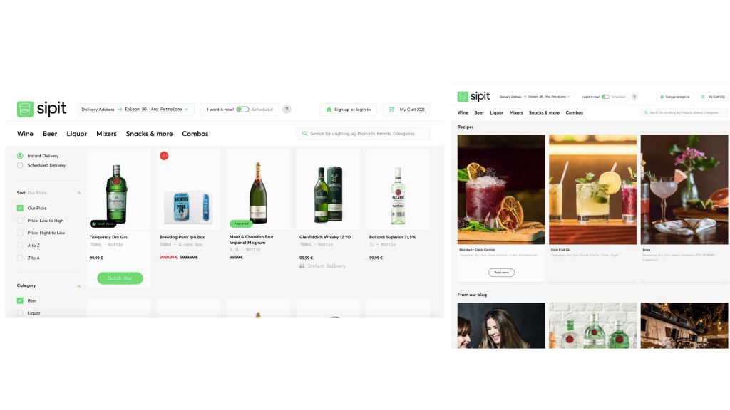Τι θα λέγατε αν θα μπορούσατε να παραγγείλετε το αγαπημένο σας ποτό για σας και την παρέα σας στο σπίτι, εύκολα και γρήγορα; Τώρα που οι έξοδοί μας γίνονται όλο και πιο δύσκολες, αντί να πάτε να το πιείτε έξω σε κάποιο μπαρ, μπορείτε να το απολαύσετε στο σπίτι σας, με λίγους και καλούς φίλους! Η πλατφόρμα sipit (και προσεχώς και εφαρμογή) είναι η πρώτη ηλεκτρονική πλατφόρμα που εξειδικεύεται στο αλκόολ.