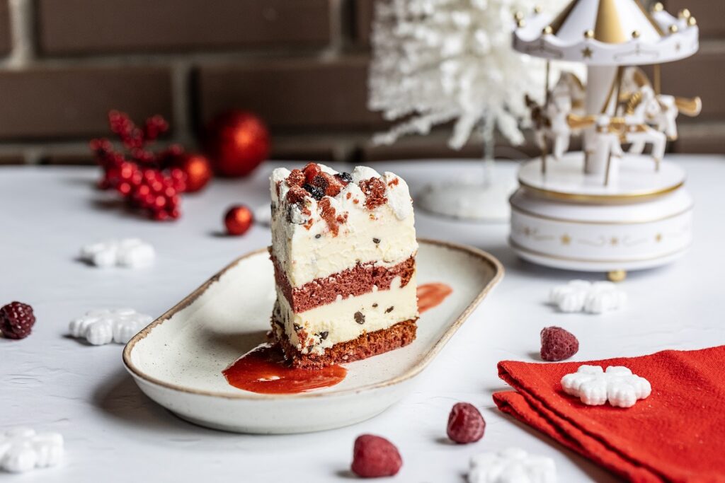 Για κυρίως, υπάρχει το Festive Roasted Turkey με ζουμερό στήθος ψητής γαλοπούλας που περιχύνεται με Port Gravy sauce. Συνοδεύεται με παραδοσιακή γέμιση από κιμά, κάστανα, cranberries, δαμάσκηνα, κουκουνάρι, ρύζι και σπιτικό πουρέ γλυκοπατάτας. Για κάτι πιο ξεχωριστό, το νεοεισερχόμενο Peppercorn Steak με Peppercorn Brandy sauce, ψητά λαχανάκια Βρυξελλών και συνοδευτικό επιλογής, Cheddar Cheese Mashed Potatoes ή Sweet Mashed Potatoes θα σας αποζημιώσει. Tο μενού κλείνει γλυκά με ένα επιδόρπιο που ακούει στο όνομα Holly Jolly, ένα λαχταριστό red velvet με στρώσεις κρέμας από λευκή σοκολάτα, τυρί Philadelphia, κομματάκια μαύρης σοκολάτας και μύρτιλλα, γαρνιρισμένο με σος φράουλας.