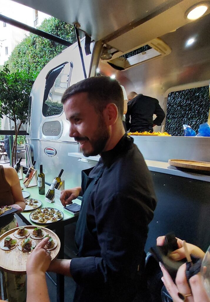 Όλες οι δημιουργίες και των 5 σεφ ήταν ωραία εναρμονισμένες με το κρασί που συνόδευαν αλλά και ταίριαζαν στο ύφος του μαγαζιού και στη street food διάθεση του όλου event. Χωρίς να θέλω να αδικήσω τους υπόλοιπους σεφ, μιλώντας καθαρά από θέμα προσωπικού γούστου, ξεχώρισα δυο δημιουργίες, τις οποίες οι σεφ πάντρεψαν με ροζέ κρασί. Αγαπώ τα ροζέ κρασιά και το ταίριασμα με πιάτα που τα αναδεικνύουν τά κάνει ακόμα πιο ευχάριστα. Αν και κόντεψα να μην το δοκιμάσω, καθώς ο σεφ ήταν λίγο «κρυμμένος», μακριά από τους υπόλοιπους, για τα δικά μου γευστικά γούστα, το καλύτερο pairing ήταν το Dianthos με το τηγανητό κουνέλι με μαγιονέζα με σπετσιερικό. Ο Χάρης Νικολούζος, Chef Patron στο Jerár, έδωσε στην πρότασή του μια πινελιά από την πατρίδα καταγωγής του, την Κέρκυρα, συνοδεύοντας το κουνέλι με μια σος από τα μπαχαρικά που βάζουν στην παραδοσιακή κερκυραϊκή παστιτσάδα. Η προσθήκη της πίκλας αγγουριού έδινε μια φρεσκάδα και μια ισορροπία στο πιάτο. Ένα ιδιαίτερο κρασί, ο Dianthos: ένα ξινόμαυρο γίνεται ροζέ. Αν και ανοιχτό σε χρώμα, έχει έντονες οξύτητες και εναρμονίστηκε πολύ όμορφα με έντονα μπαχαρικά που μας πρότεινε ο σεφ.