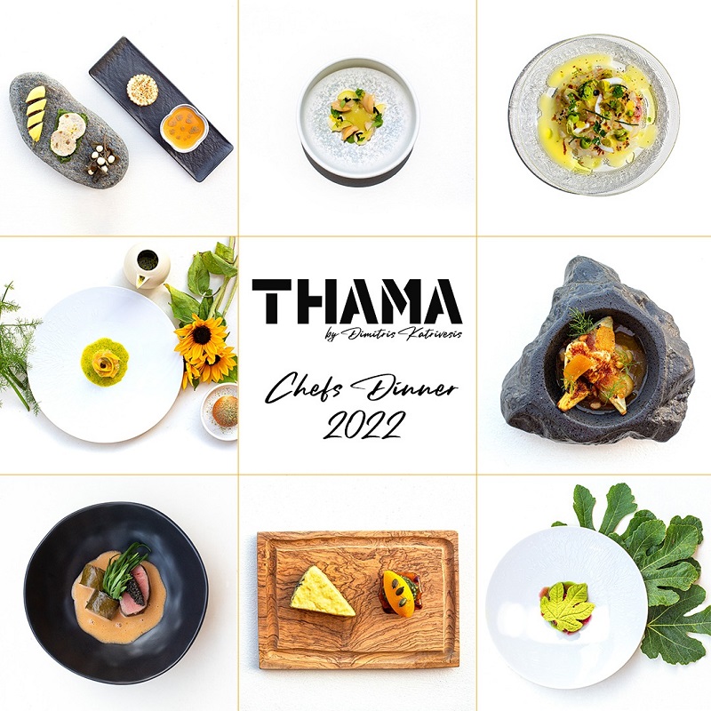 Στο εστιατόριο THAMA στην Τήνο, ο Δημήτρης Κατριβέσης υποδέχθηκε τους λάτρεις της γαστρονομίας σε μία γιορτή των γεύσεων και των πολιτισμών με βάση την Ελλάδα και με έμπνευση από τα τηνιακά υλικά. Το Chefs Dinner 2022, υπό την αιγίδα του Ελληνικού Οργανισμού Τουρισμού (ΕΟΤ), αγκαλιάστηκε θερμά από τον κόσμο που γέμισε το εστιατόριο για να γευθεί τις προτάσεις των 5 world class Chefs που συνέθεσαν ένα μενού 7 πιάτων, καθένα από τα οποία είχε τη δική του μακρά ιστορία που ξετυλιγόταν στον ουρανίσκο όσων τα γεύτηκαν.