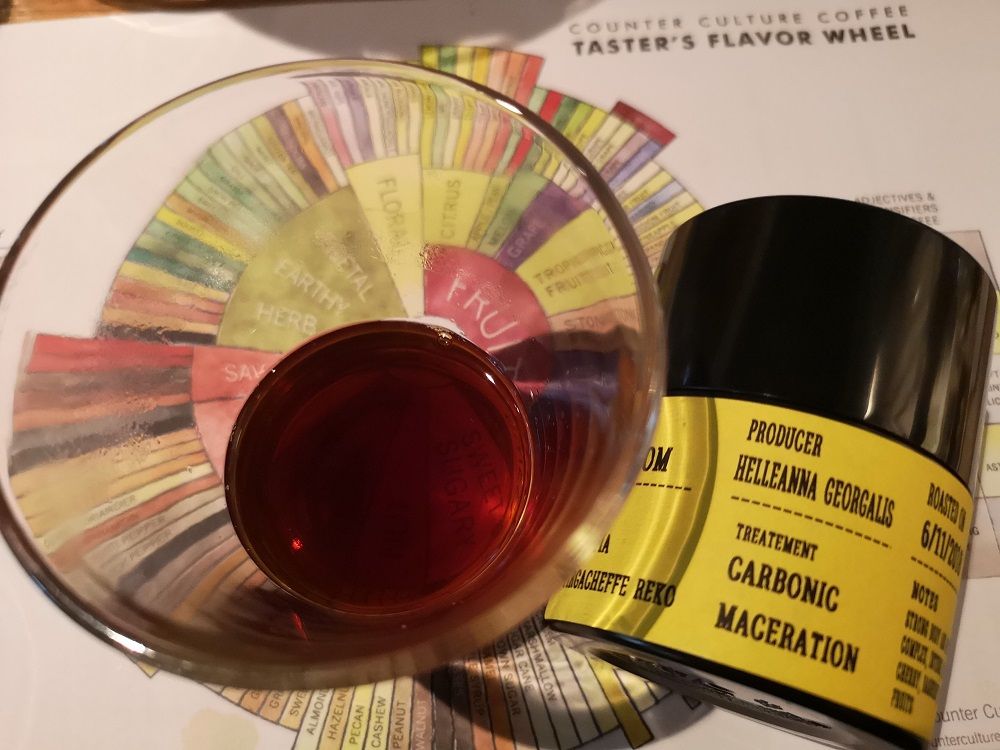 Η γευστική έκπληξη της παρουσίασης περιλάμβανε μια special cupping experience με μια εξαιρετικά σπάνια και ακριβή ποικιλία καφέ, μοναδική σε γεύση, με ειδική επεξεργασία εμπνευσμένη από την διαδικασία παρασκευής του κρασιού, την Ethiopia Yirgacheffe Reko, του οποίου η ωμή επεξεργασία είναι εμπνευσμένη από το κρασί και έχει πάρα πολύ έντονα και ιδιαίτερα χαρακτηριστικά και γίνεται με αναερόβια ζύμωση που προσδίδει ιδιαίτερα γευστικά χαρακτηριστικά στον καφέ που ανήκει στη ποικιλία arabica heirloom και η παραγωγός του είναι η ελληνικής καταγωγής Ελεάννα Γεωργαλή. Η παραγωγή είναι εξαιρετικά μικρή, η επεξεργασία πολύ ακριβή και αυτό κάνει τον καφέ σπάνιο. Ενδεικτικά, η τιμή ενός τέτοιου καφέ μπορεί να φτάσει και τα 400€ το κιλό.