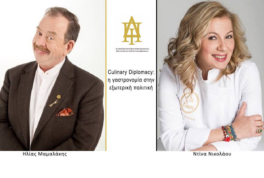 Το Ελληνικό Ινστιτούτο Πολιτιστικής Διπλωματίας υπό την αιγίδα του Ελληνικού Κόσμου διοργανώνει στις 15 Μαρτίου συζήτηση με τον κ. Ηλία Μαμαλάκη και την σεφ Ντίνα Νικολάου υπό τον τίτλο Culinary Diplomacy: η γαστρονομία στην εξωτερική πολιτική.