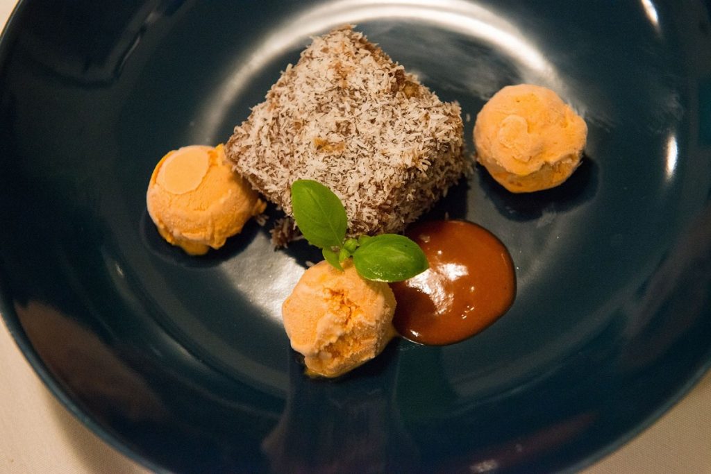Για κυρίως μας σέρβιραν έναν εκπληκτικό και πρωτότυπο Μπακλαβά πανσέτας – Pork belly baklava- και στη συνέχεια ένα μοναδικό Σαγανάκι θαλασσινών με κόκκινο κάρι, που έκρυβε κάτω από τα χτένια, τον αστακό και τις γαρίδες ένα ελληνικότατο σπανακόρυζο! Το ένα πιάτο ήταν καλύτερο από το άλλο, ενώ, αν έπρεπε να διαλέξω, θα ήμουν ανάμεσα στον Μπακλαβά πανσέτας για την πρωτοτυπία του και τη μοναδική νοστιμιά του και στο γλυκό, το οποίο ήταν μεν Λάμινγκτον (κλασικό αυστραλέζικο γλυκό) αλλά με γεύση ραβανί και συνοδευόταν από ένα πεντανόστιμο και πικάντικο παγωτό από κόκκινη πιπεριά Φλωρίνης!