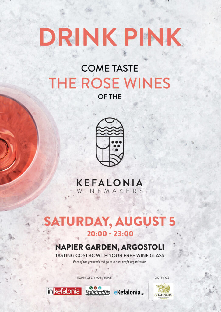 Το Σάββατο, 5 Αυγούστου στις 20:00 στο Νάπιερ στο Αργοστόλι, το κοινό θα μπορεί να γευτεί κρασιά από όλα τα οινοποιεία και να μάθει περισσότερα για τα ροζέ κρασιά της Κεφαλονιάς απευθείας από τους ανθρώπους που τα παράγουν.