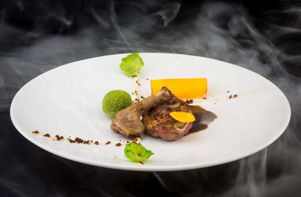 Αρνί με σιφόν φέτας, αγγούρι τουρσί ,σφουγγάρι ντομάτας και ελιές tartare