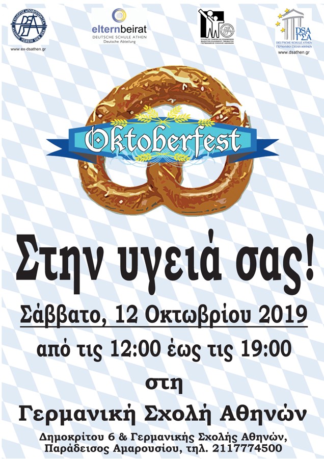 12/10, Γερμανική Σχολή Αθηνών, Δημοκρίτου 6 & Γερμανικής Σχολής Αθηνών, Μαρούσι (πίσω από το εμπορικό κέντρο Avenue), 12:00-19:00 dsa-oktoberfest.de