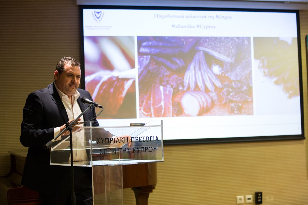 Οικοδεσπότης της εκδήλωσης ο Εμπορικός Σύμβουλος του Εμπορικού Κέντρου της Πρεσβείας της Κυπριακής Δημοκρατίας Ιωσήφ Κυπραίος αναφέρθηκε στη θέση των παραδοσιακών αλλαντικών στην αλλαντοποιία της Κύπρου, εξηγώντας ότι σκοπός του Εμπορικού τμήματος είναι η προώθηση των εξαιρετικών αυτών προϊόντων στην ελληνική και την παγκόσμια αγορά: