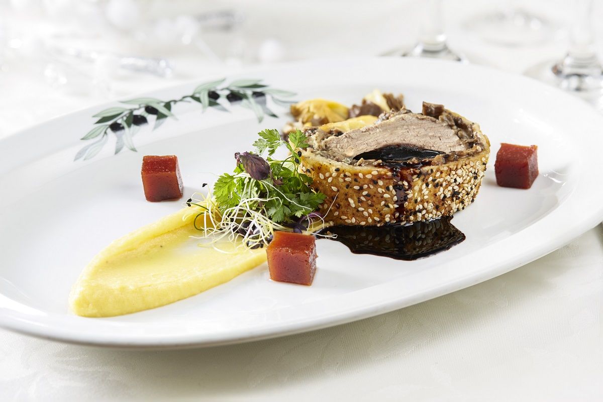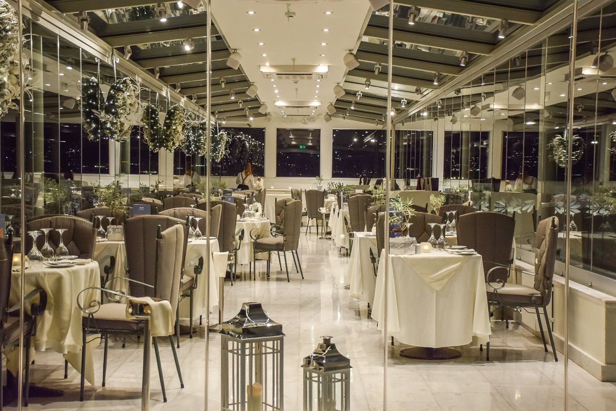 Για το ρεβεγιόν της Πρωτοχρονιάς πάλι, το μενού περιλαμβάνει σούπα κάστανου με κράνμπερι, καπνιστό φασιανό και λικέρ πικραμύγδαλου, σύκα ποσέ σε Porto γεμιστά με πατέ πάπιας, μενταγιόν αστακού, πουρέ σελινόριζας και βλαστούς νεροκάρδαμου και μπαρμπούνι με αρωματικό βούτυρο, πράσινα σπαράγγια, κρέμα περουβιανής πατάτας και πούδρα αυγοτάραχου. Ακολουθεί μη αλκοολούχο sorbet Bloody Mary με σιρόπι σέλινου, πριν το κυρίως που είναι φιλέτο Ουέλινγκτον Black Angus με πουρέ κόκκινης κολοκύθας με πράσινο μήλο, κυδωνόπαστο και σάλτσα Cabernet Sauvignon. Για το τέλος, ζεστό Tomme de Savoie σε τραγανό φύλλο σφολιάτας με κρέμα πορτοκαλιού και φιστίκι Αιγίνης και σφαίρα λευκής σοκολάτας σε καπρέζ, μους κάστανο με ζελιφιέ από φραγκοστάφυλο, σκόνη μούρων και φύλλο χρυσού. Από ένα σωστό ρεβεγιόν Πρωτοχρονιάς βέβαια, δεν λείπει ποτέ και η βασιλόπιτα στην αλλαγή του χρόνου, παρέα με ένα ποτήρι αφρώδη οίνο. (Κόστος: 120€ / άτομο, έκπτωση 50% για παιδιά 6-10 ετών, παιδιά έως 5 ετών δωρεάν).