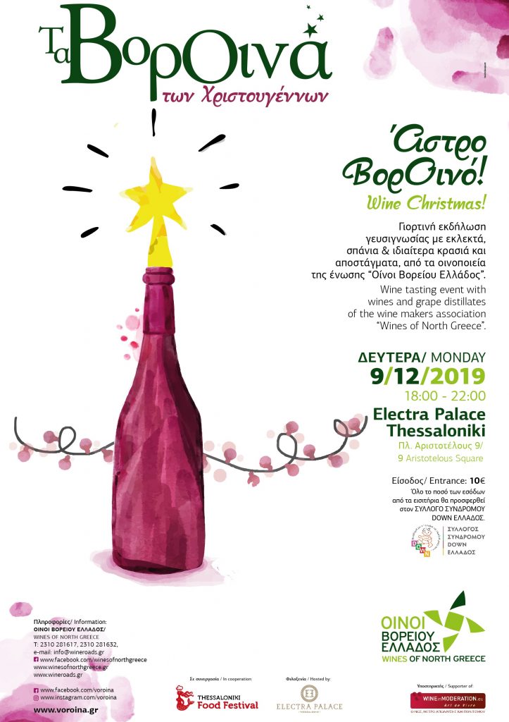 «Τα ΒορΟινά των Χριστουγέννων», είναι μία πολύ ιδιαίτερη οινική εκδήλωση συνδυάζοντας το χριστουγεννιάτικο κλίμα, αλλά και μερικά από τα καλύτερα κρασιά της χώρας και θα πραγματοποιηθεί τη Δευτέρα 9 Δεκεμβρίου 2019, από τις 6 το απόγευμα, έως τις 10 το βράδυ, στο ξενοδοχείο Electra Palace Thessaloniki, από τους οινοποιούς της ένωσης «Οίνοι Βορείου Ελλάδος».