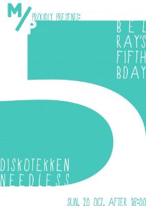 Σήμερα, κλείνει τα 5 και το γιορτάζει με κυριακάτικο dance party, στις 20/10 από τις 18:00 και μετά. Τη μουσική επένδυση του πάρτι έχουν αναλάβει οι Chevy και Mr. Z (δύο εκ των resident DJs του Needless) μαζί με τον να συνδυάζονται με τον Χρήστο Αγγελόπουλο των Diskotekken.