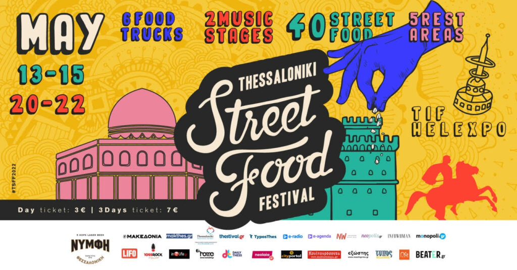 Το Thessaloniki Street Food Festival, η μεγαλύτερη γιορτή Street Food και μουσικής στη Θεσσαλονίκη επιστρέφει για το 2022 πλήρως ανανεωμένο για 5η χρονιά για 2 διαδοχικά τριήμερα. Από σήμερα, Παρασκευή 13 έως Κυριακή 15 Μαΐου αλλά και το επόμενο τριήμερο 20 έως και 22 Μαΐου, ο προαύλιος χώρος της ΔΕΘ – TIF Helexpo μετατρέπεται σ’ ένα τεράστιο γευστικό πάρκο με επιλογές φαγητού απ’ όλο τον κόσμο.