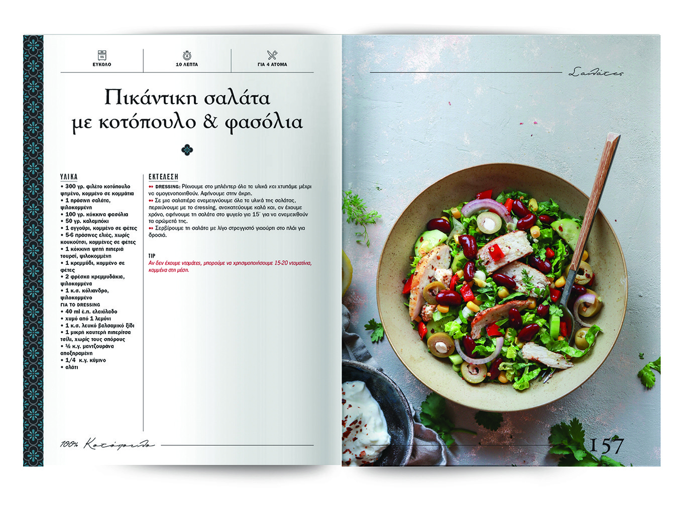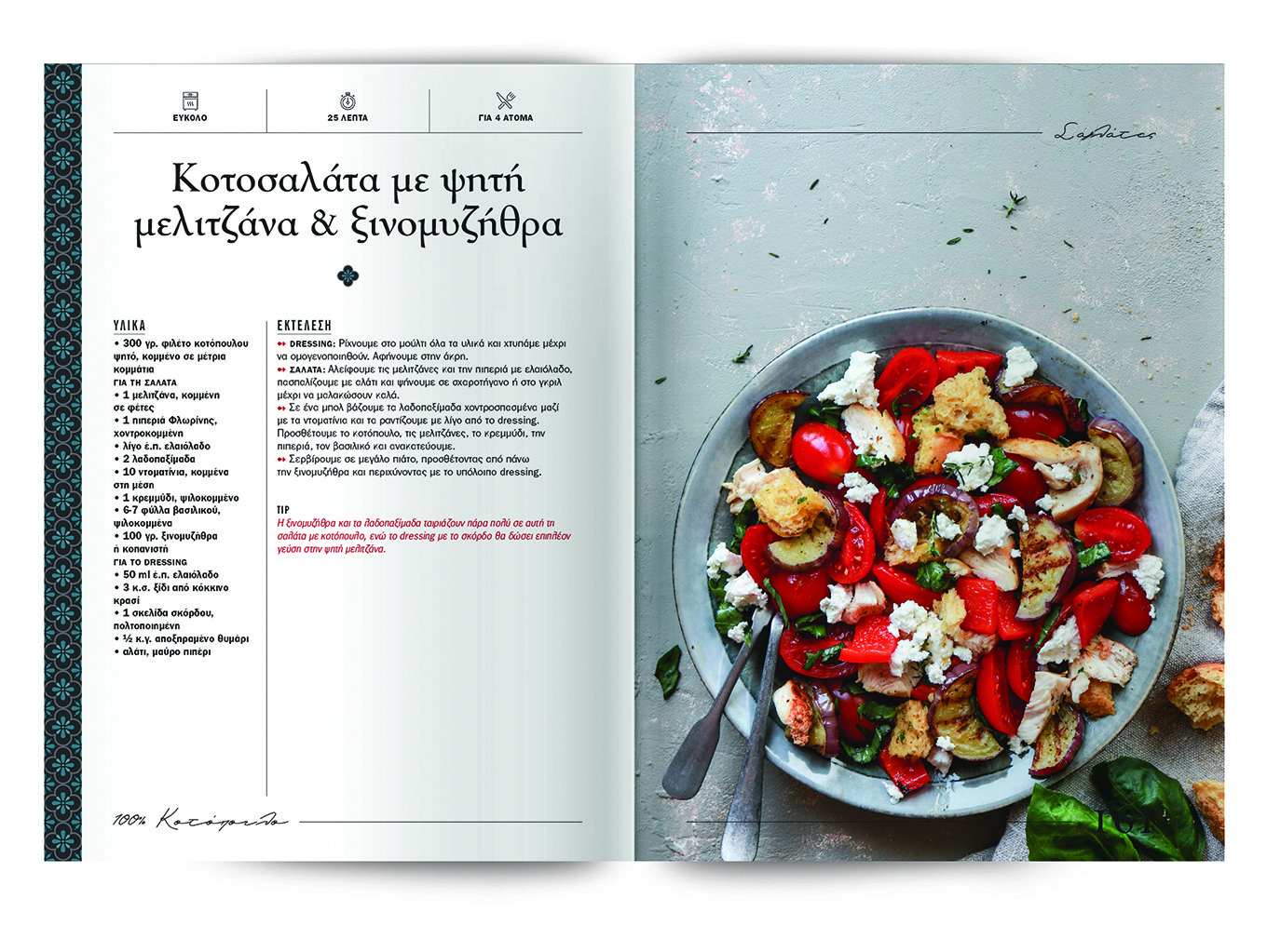 Δροσερές, ανάλαφρες ή χορταστικές, σε ρόλο κυρίως πιάτου, ελαφρού γεύµατος ή συνοδευτικού, έχουν ως πρωταγωνιστή το κοτόπουλο και ανάµεσα στα υλικά τους ζυµαρικά και όσπρια, κάθε λογής λαχανικά, ολόφρεσκα µυρωδικά και ελληνικά αγαπηµένα τυριά!