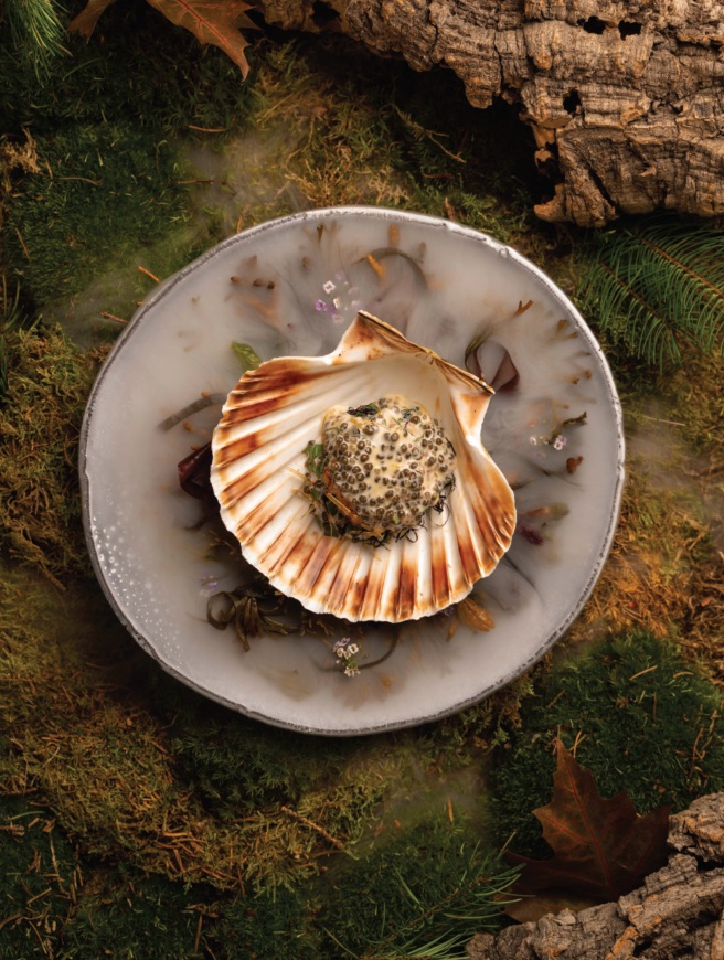 Χτένι αλιευμένο με κατάδυση, σάλτσα βουτύρου εσπεριδοειδών και χαβιάρι Kristal®