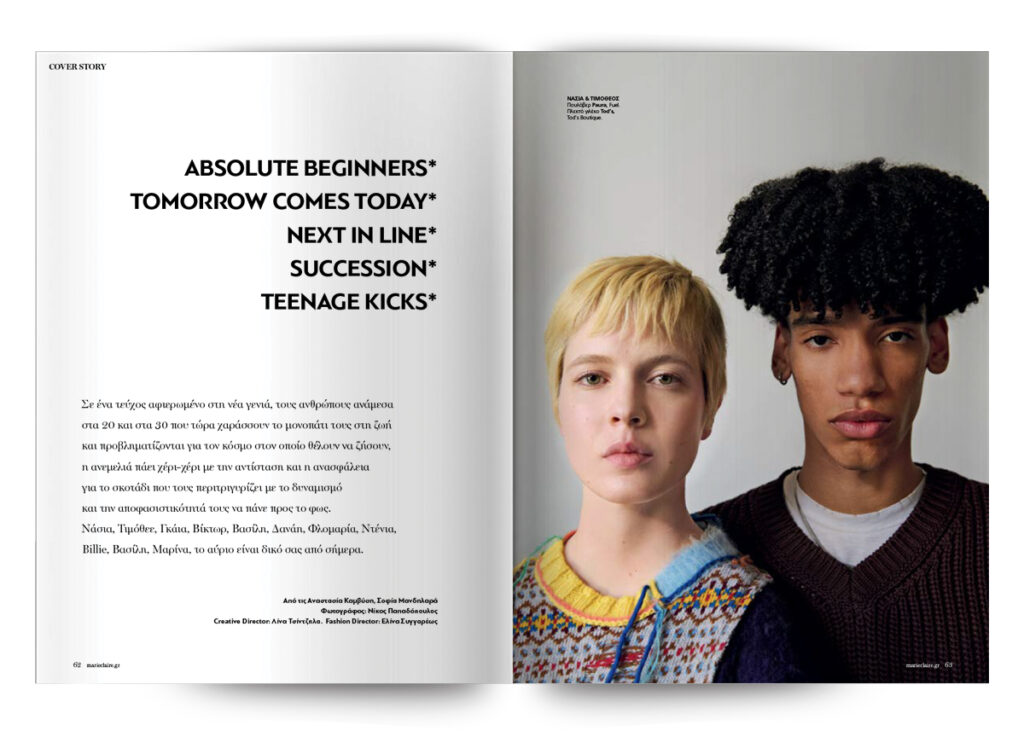 Ένα τεύχος αφιερωμένο στη νέα γενιά, τους ανθρώπους ανάμεσα στα 20 και στα 30 που χαίρονται τη ζωή, προβληματίζονται για τον κόσμο στον οποίο θέλουν να ζήσουν, ερωτεύονται, αντιστέκονται, χορεύουν στο φως. Έντεκα νέοι με καλλιτεχνικές ανησυχίες που διαμορφώνουν μια εποχή πιο συμπεριληπτική από ποτέ.