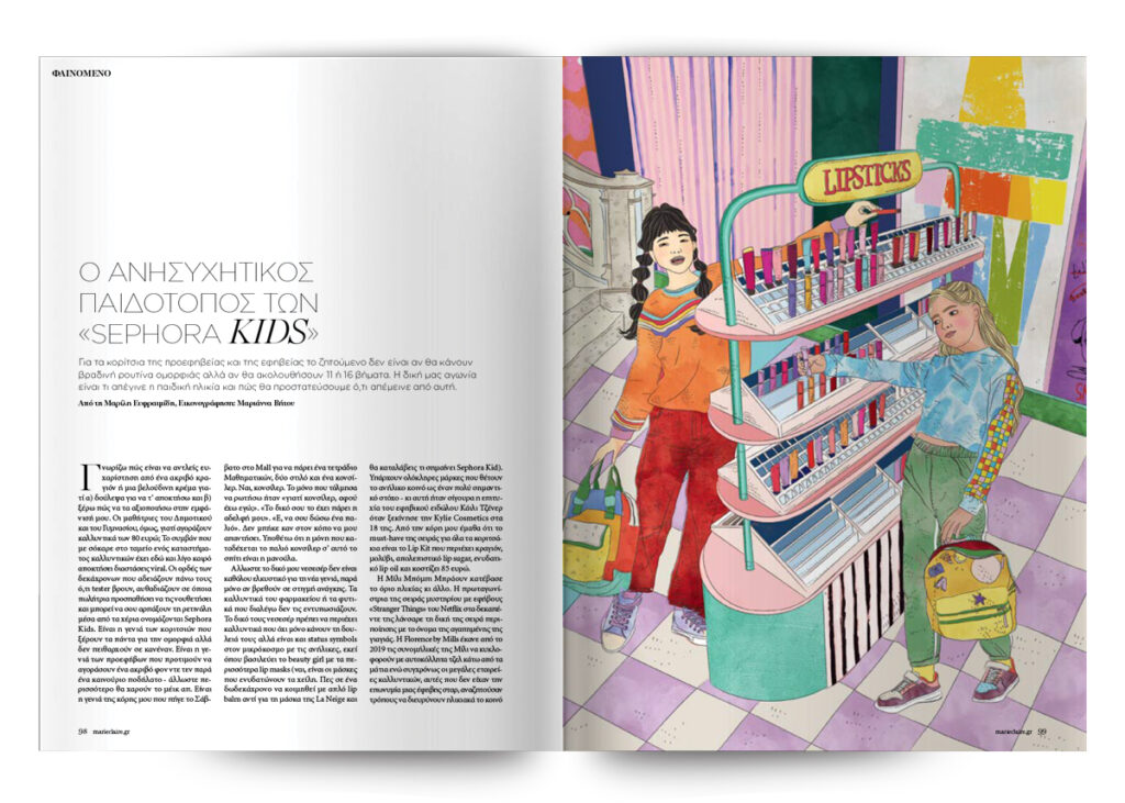 Από ένα τεύχος αφιερωμένο στη νέα γενιά δεν θα μπορούσε να λείπει η αναφορά στην επέλαση των «sephora kids»: γιατί τα κορίτσια της προεφηβείας και της εφηβείας χρειάζονται μία ρουτίνα ομορφιάς που έχει 11 ως 16 βήματα;