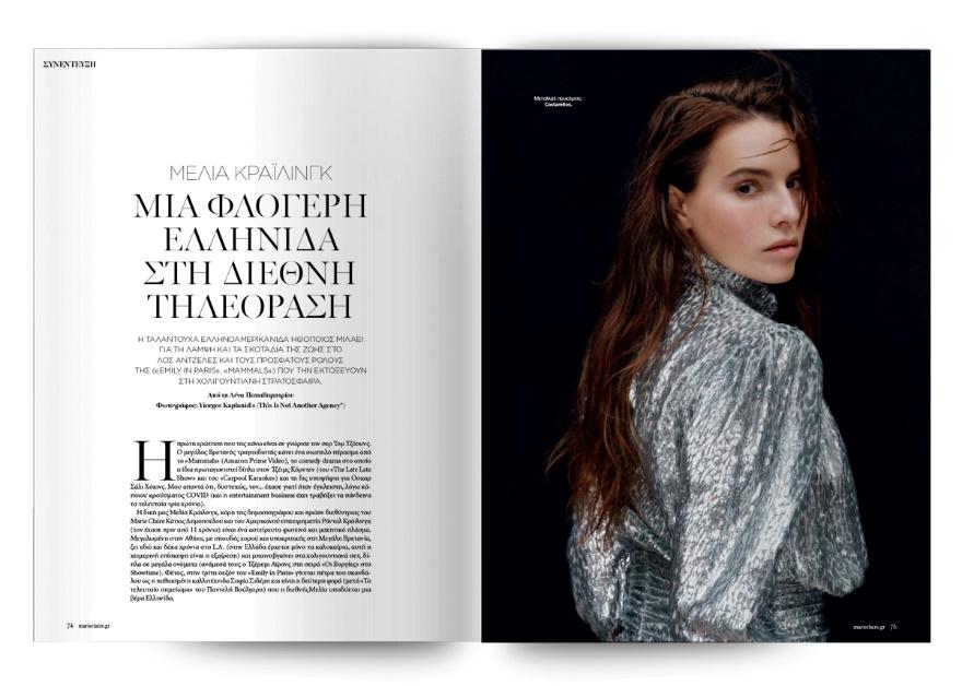 Η Ελληνοαμερικανίδα σταρ Μελία Κράιλινγκ φωτογραφήθηκε αποκλειστικά για το περιοδικό και μίλησε για τη ζωή στο Λος Άντζελες αλλά και τις δύο σειρές, Mammals και Emily in Paris, που την έχουν κάνει περιζήτητη