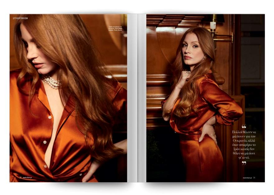 Στο εξώφυλλο η Τζέσικα Τσαστέιν, η δυναμική, βραβευμένη με Όσκαρ ηθοποιός και παραγωγός, που ανοίγει δρόμους στο Χόλιγουντ για να ειπωθούν οι ιστορίες των γυναικών όπως πραγματικά συνέβησαν