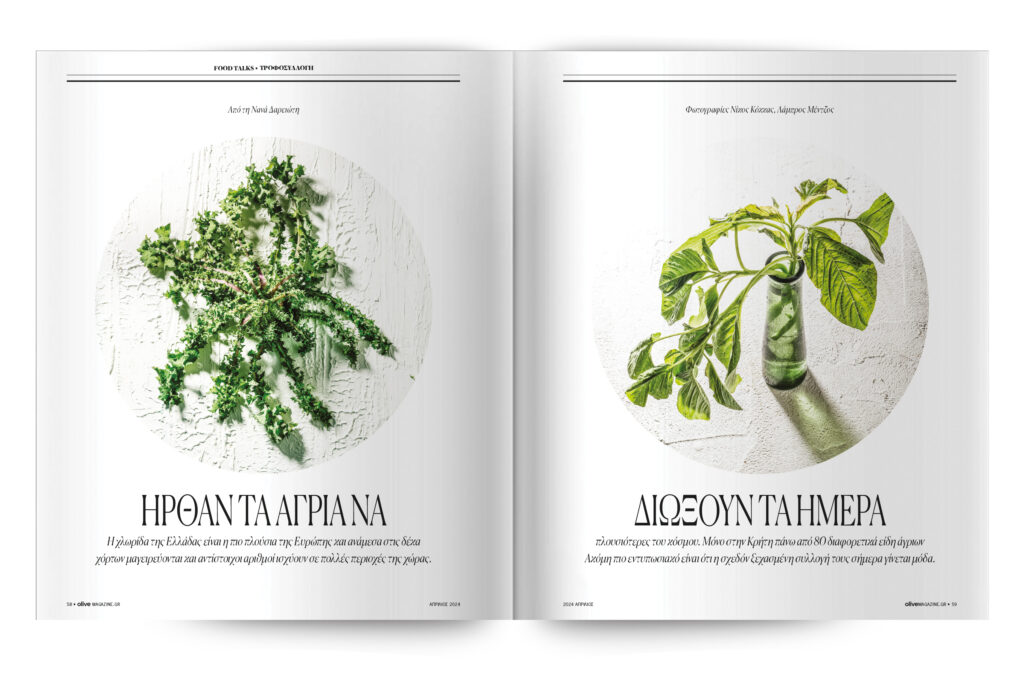 Στο νέο τεύχος του Olive που κυκλοφορεί αυτή την Κυριακή 24/3 με το Πρώτο Θέμα, απολαύστε ένα υπέροχο αφιέρωμα στα Άγρια Χόρτα της Ελλάδας, που έχουν μοναδική γεύση και μεγάλη ιστορία.
