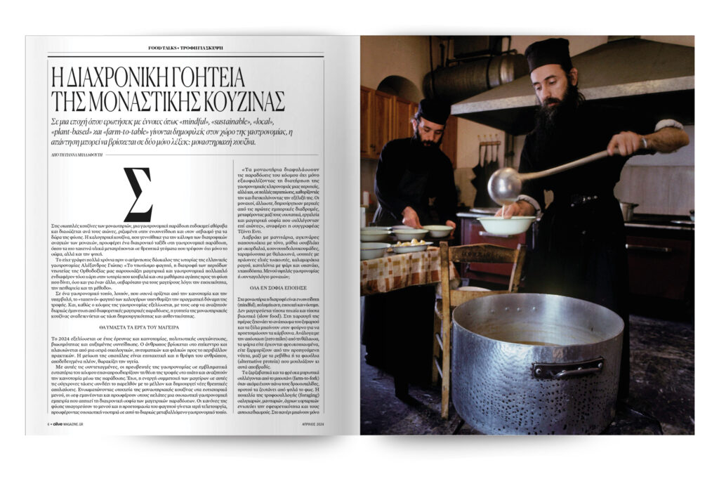 Σε μια εποχή όπου ερωτήσεις με έννοιες όπως «mindful», «sustainable», «local», «plant-based» και «farm-to-table» γίνονται δημοφιλείς στον χώρο της γαστρονομίας, η απάντηση μπορεί να βρίσκεται σε δύο μόνο λέξεις: μοναστηριακή κουζίνα.