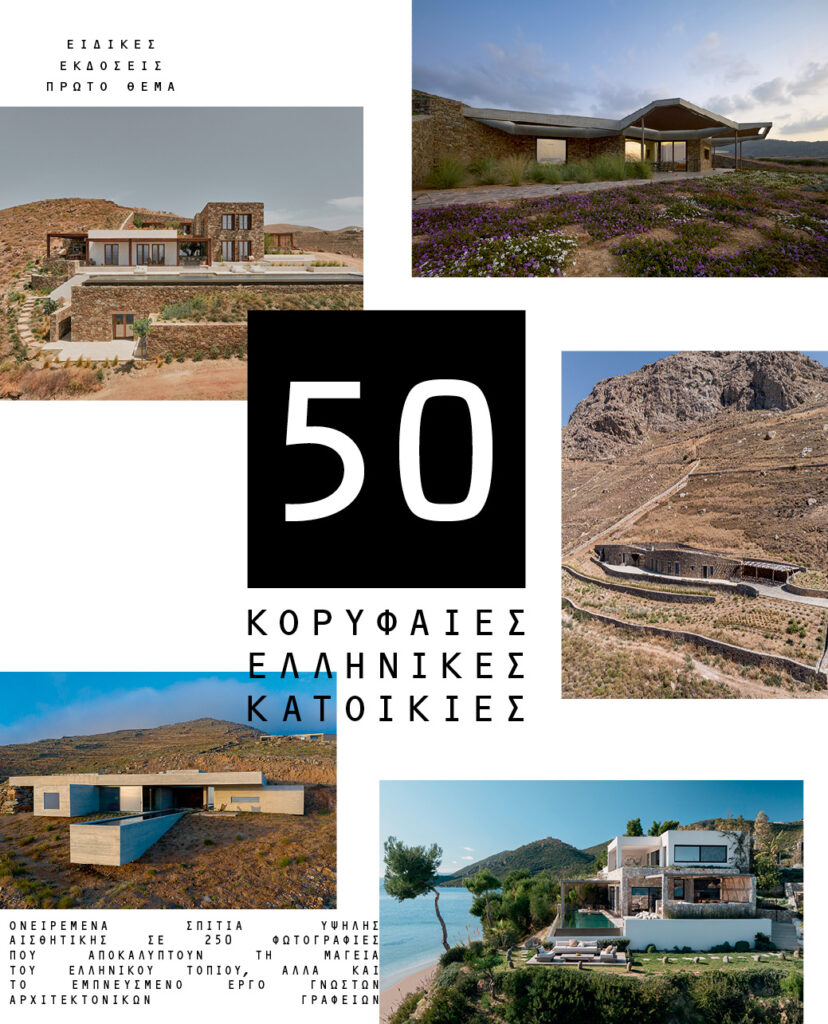 2. Τη συλλεκτική έκδοση «50 κορυφαίες ελληνικές κατοικίες», που εστιάζει σε κορυφαία αρχιτεκτονικά case-studies σε όλη την επικράτεια.