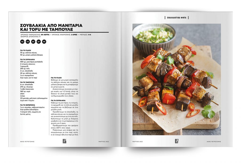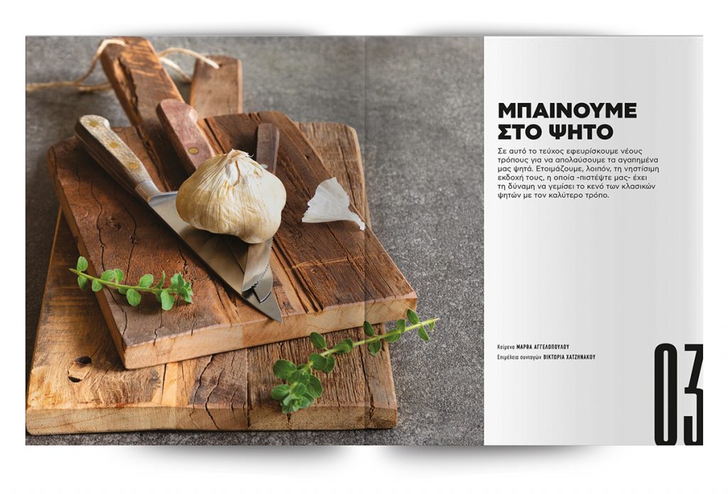 Σε αυτό το τεύχος εφευρίσκουμε νέους τρόπους για να απολαύσουμε τα αγαπημένα μας ψητά. Ετοιμάζουμε, λοιπόν, τη νηστίσιμη εκδοχή τους, η οποία -πιστέψτε μας- έχει τη δύναμη να γεμίσει το κενό των κλασικών ψητών με τον καλύτερο τρόπο.