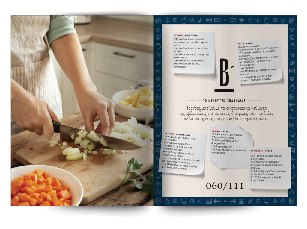 Προγραμματίζουμε τα οικογενειακά γεύματα της εβδομάδας, για να έχει η διατροφή των παιδιών, αλλά και η δική μας, ποικιλία σε πρώτες ύλες.