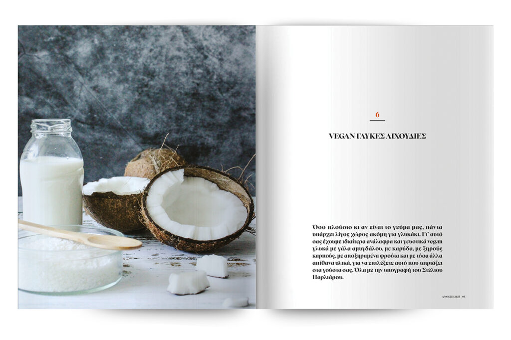 αλλά και κρέμα αμυγδάλου, σάντουιτς με μπισκότα και σοκολάτα, μπισκότα με καρύδα και μπάρες με χουρμάδες, σοκολατένιο spread με ταχίνι και αμυγδαλωτά, όλα σε vegan εκδοχές, γεμάτα γεύση και αρώματα, για απόλαυση ενοχές.