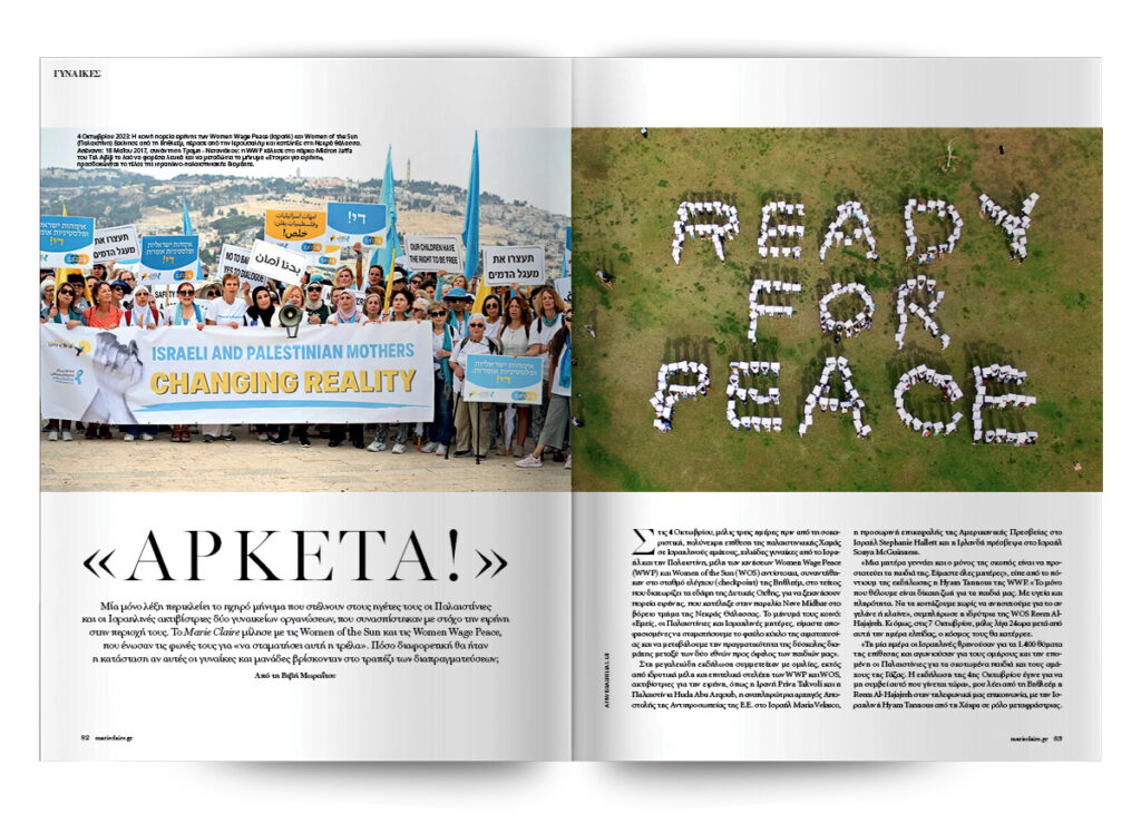 Αναζητήσαμε τις γυναίκες που ρισκάρουν τη σωματική ακεραιότητα και τη ζωή τους για την ειρήνη, τις Παλαιστίνιες και Ισραηλινές ακτιβίστριες των γυναικείων οργανώσεων Women of Wage Peace και Women of the Sun, που ενώνουν τις δυνάμεις τους για την ελευθερία στην περιοχή της Γάζας.