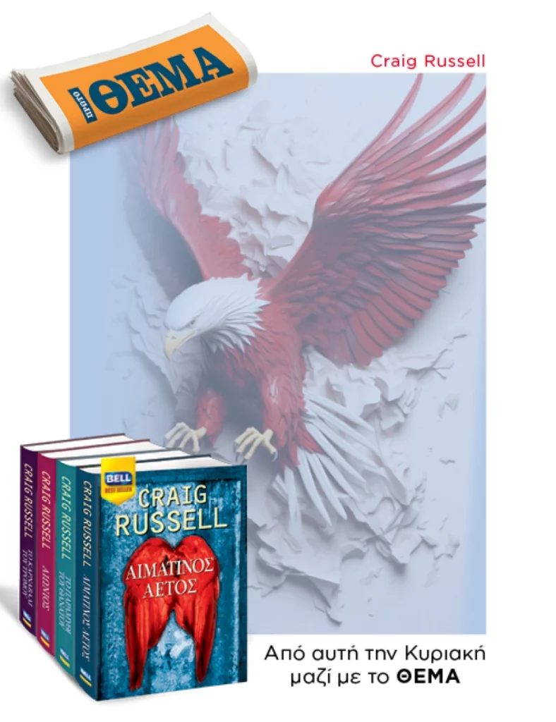 Αρχίζοντας από αυτή την Κυριακή, 19 Νοεμβρίου 2023, μαζί με το ΘΕΜΑ έρχεται το συναρπαστικό μυθιστόρημα «Αιμάτινος Αετός», με κεντρικό ήρωα τον μυθικό αστυνόμο Γιαν Φάμπελ, ο οποίος προσπαθεί να λύσει έναν γρίφο -πριν να είναι πολύ αργά. Ενδεικτικό της μοναδικής, εξαιρετικά εκλεπτυσμένης προσέγγισης του Craig στο αστυνομικό θρίλερ, αποτελεί το γεγονός ότι ο «Αιμάτινος Αετός» είναι εμπνευσμένος από μια παμπάλαιη μυστικιστική (και ακραία βίαιη) τελετή των Βίκινγκς.