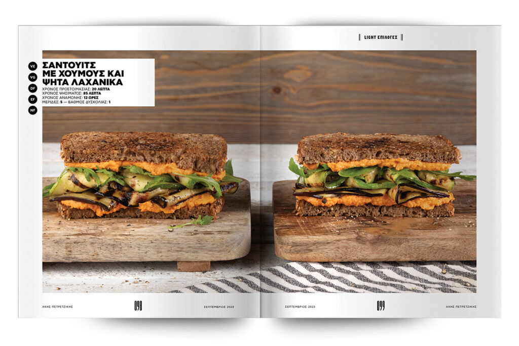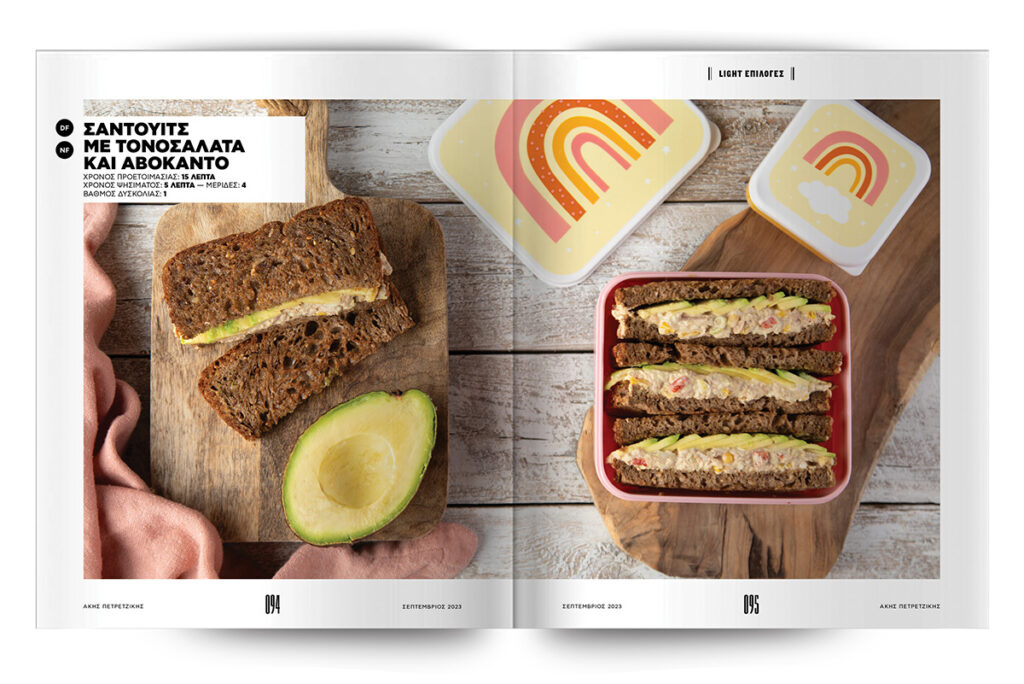 Σάντουιτς με ομελέτα, Σάντουιτς με κοτοσαλάτα, Σάντουιτς αλα πίτσα, Σάντουιτς με τονοσαλάτα και αβοκάντο, Σάντουιτς με χούμους και ψητά λαχανικά
