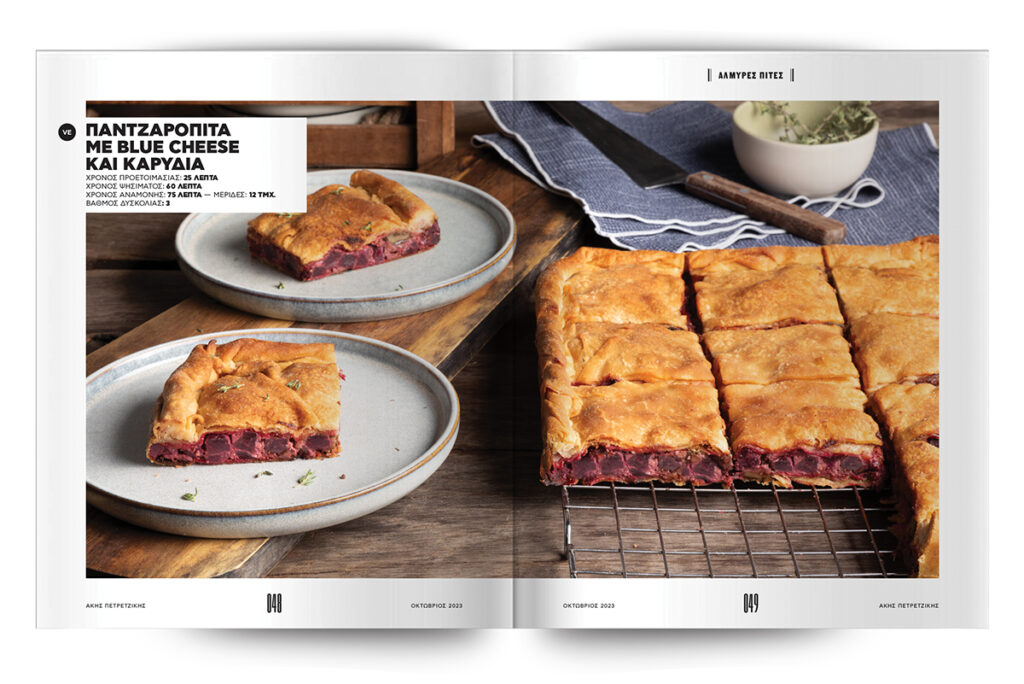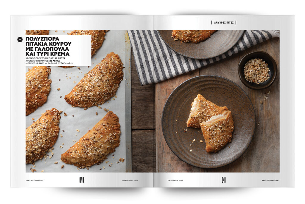 Μελιτζανόπιτα, Λαχανόπιτα, Πολύσπορα πιτάκια κουρού με γαλοπούλα και τυρί κρέμα, Σεσκουλόπιτα, Παντζαρόπιτα με blue cheese και καρύδια.
