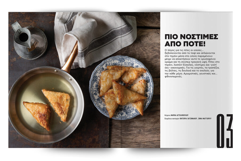 Τι φέρνουν τα πρωτοβρόχια; Φέρνουν όρεξη για… σπίτι. Ταινίες, επιτραπέζια και γεύματα με εκείνους που αγαπάμε. Φέρνουν όρεξη να μπούμε στην κουζίνα. Να ανάψουμε τον φούρνο και να σκαρώσουμε τις πιο λαχταριστές, σπιτικές πίτες. Αυτό κάνουμε λοιπόν! Μπαίνουμε στην κουζίνα και ετοιμάζουμε πίτες με φύλλο και χωρίς. Στο ταψί και στο τηγάνι. Μεγάλες και μικρές. Για το σπίτι, τη βόλτα και –φυσικά- για το σχολείο και το γραφείο.