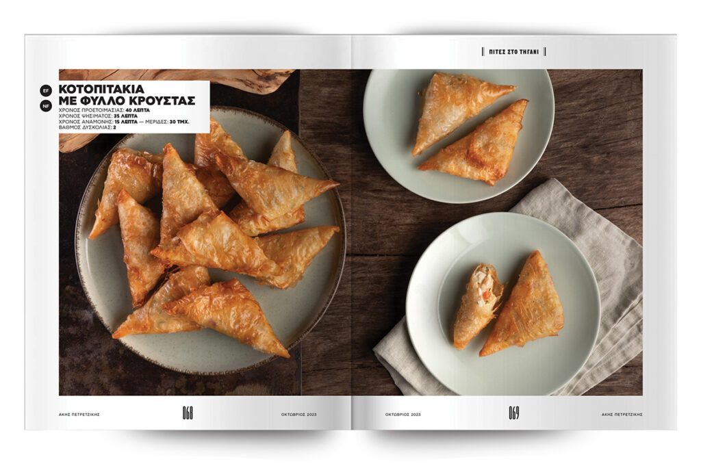 Πιροσκί με φέτα, Πρασοπιτάκια, Κοτοπιτάκια με φύλλο κρούστας, Χορτοπιτάκια, Στριφτές πατατόπιτες.